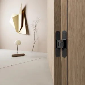 The extensive range of ANSELMI hinges offers premium products for lightweight residential doors. The concealed hinge system is suitable for both interior residential doors and interior doors weighing up to 60 kg and is available in several model variants. The hinge system can be adjusted in three dimensions and guarantees long-lasting, maintenance-free operation of the door and is available in a wide range of aesthetic designs.