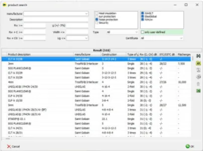 The WINSPZ® database offers a comprehensive set of test certificates and test values from glazing manufacturers around the world and is updated on an ongoing basis. You can also enter your own sound test certificates in the database.