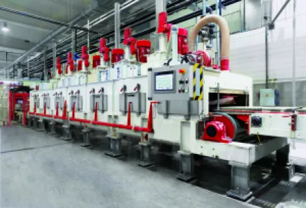 After calibration, products such as pavers and slabs are ground in the grinding machine with up to 10 high-power stations. Depending on the number of grinding stations used, a surface appearance from rough to fine can be achieved.